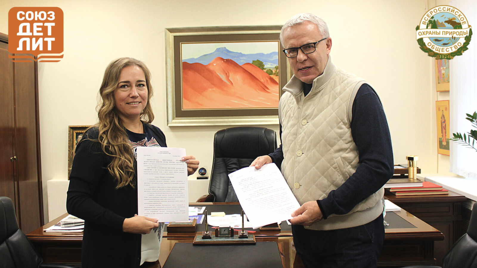 Сегодня мы со ВСЕРОССИЙСКИМ ОБЩЕСТВОМ ОХРАНЫ ПРИРОДЫ (ВООП), Председателем ВООП, послом доброй воли ООН Вячеславом Фетисовым подписали соглашение о сотрудничестве между ВООП и Союзом детских и юношеских писателей!